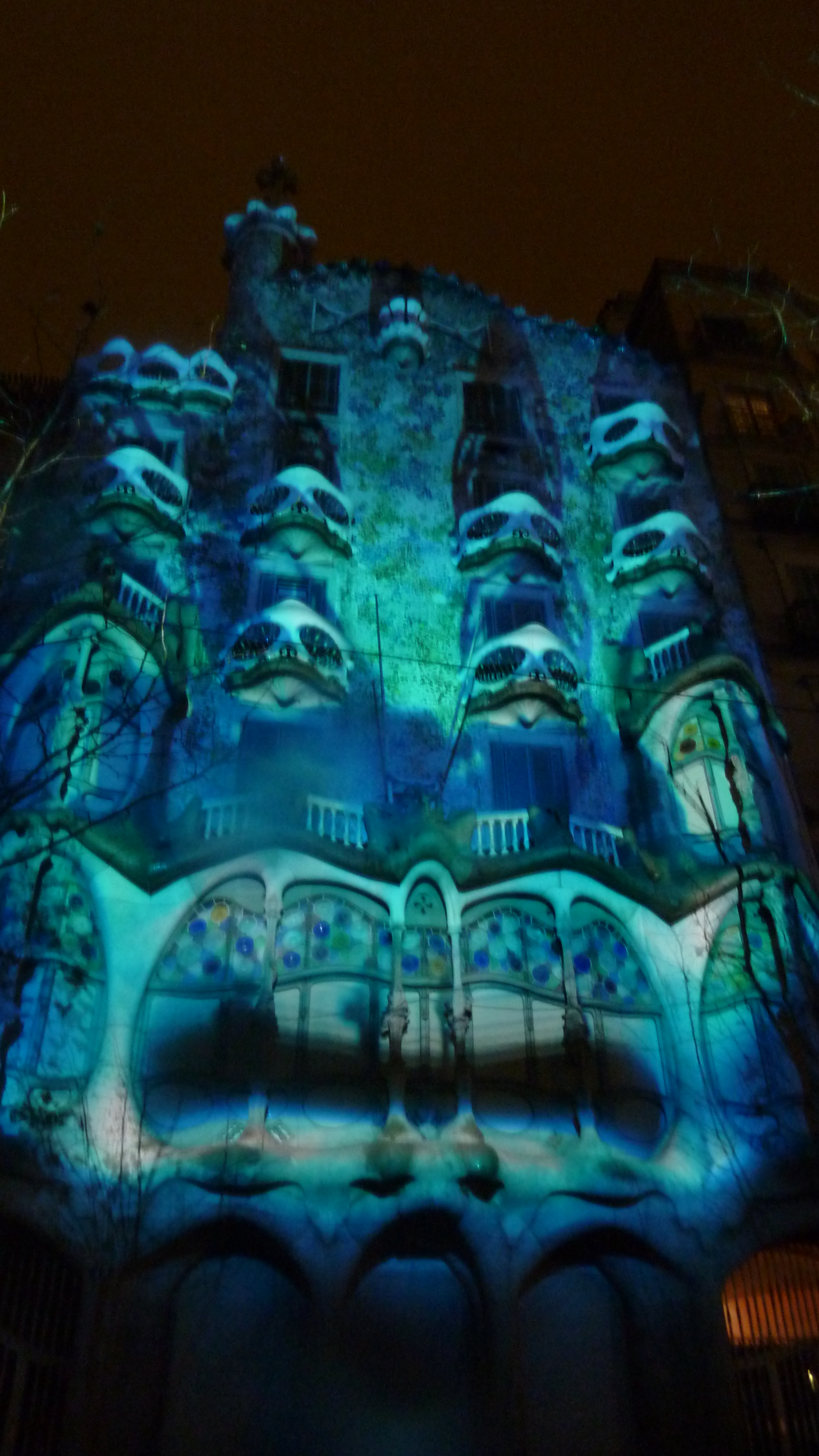 Al ritmo al que evoluciona nuestro mundo, una no sabe ya en que instante o lugar va a ser sorprendida por los fascinantes recursos que la tecnología está poniendo a nuestra disposición. O al menos a la de unos cuantos. La innovación tecnológica y las nuevas aplicaciones de la que ya existe, crecen a un ritmo tal que resulta sumamente difícil para cualquiera de nosotros, estar al corriente de todas ellas. Y así de repente, por casualidad, quedamos maravillados ante experiencias y proyectos que, en realidad, llevan un rodaje considerable. Eso es exactamente lo que experimenté el pasado 21 de octubre a raíz de una invitación para asistir a la presentación de un audiovisual mapping en la Casa Batlló. Una de las joyas arquitectónicas de Barcelona. El evento se celebraba con motivo del décimo aniversario de la apertura al público de este singular y emblemático edificio. Quienes tuvieron la fortuna de presenciarlo, creo que estarán totalmente de acuerdo conmigo en lo acertado del título con que se bautizó la proyección: “El despertar de la Casa Batlló”. Puedo asegurar que la técnica del mapping, consiguió dar vida al edificio, revivir su historia desde su nacimiento allá por el año 1904 y reconstruir y explotar toda la simbología encerrada tras sus sorprendentes elementos arquitectónicos. La música cuidadosamente escogida, ayudó a crear esa atmósfera de magia quasi-tangible que hace vibrar profundamente y emocionarse hasta el punto de poner la “piel de gallina”.